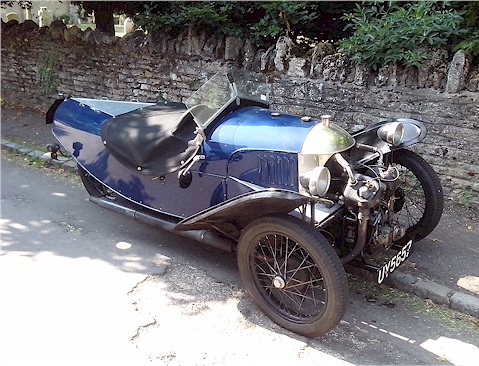 Morgan motorbike parked outside St Mary's Church. |