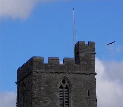 flies over Felmersham Church Tower. At one time
