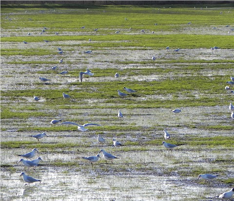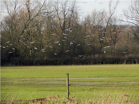 Gulls searching for food in the Felmersham flood