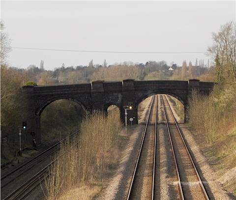 Moor End Lane railway bridge, Radwell was taken from Peck's Bridge,