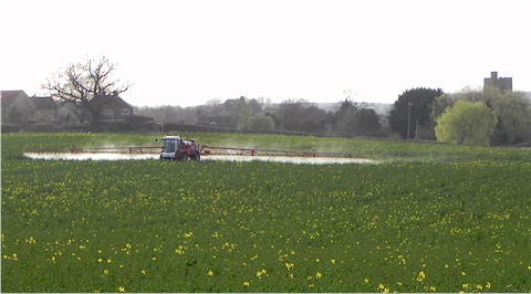 Right photograph: Spraying the same field a few weeks earlier.