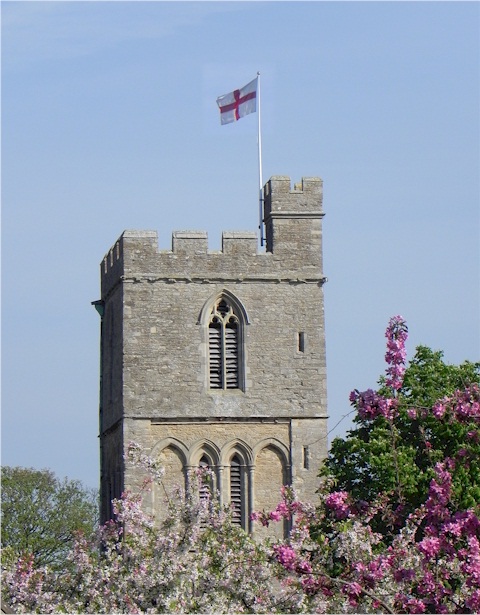 The English flag flies on Felmersham church to
