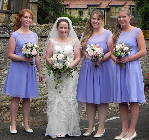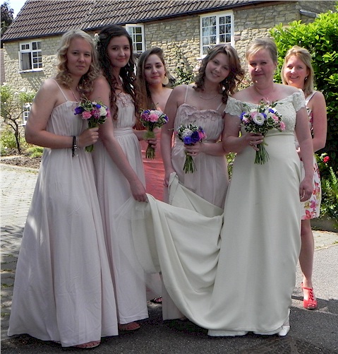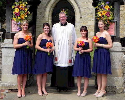 The Revd. Robert Evens with four of the six bridesmaids.