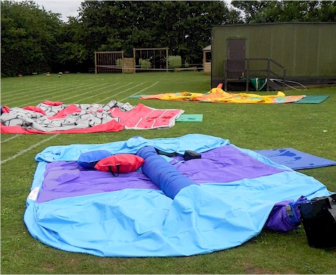 inflatables were left deflated and wet. |