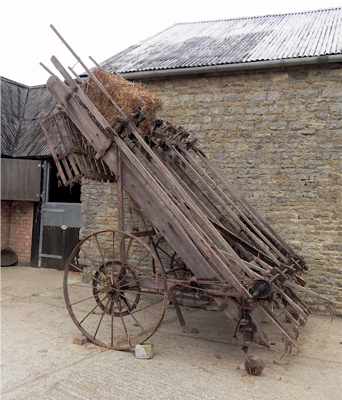 Driven by the wheels and a chain, the hay is picked up