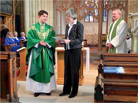 Churchwarden Jane Wells presenting a cheque for £600