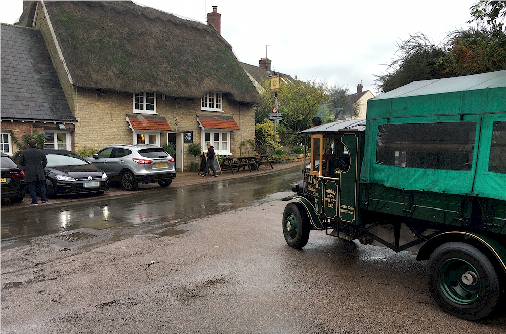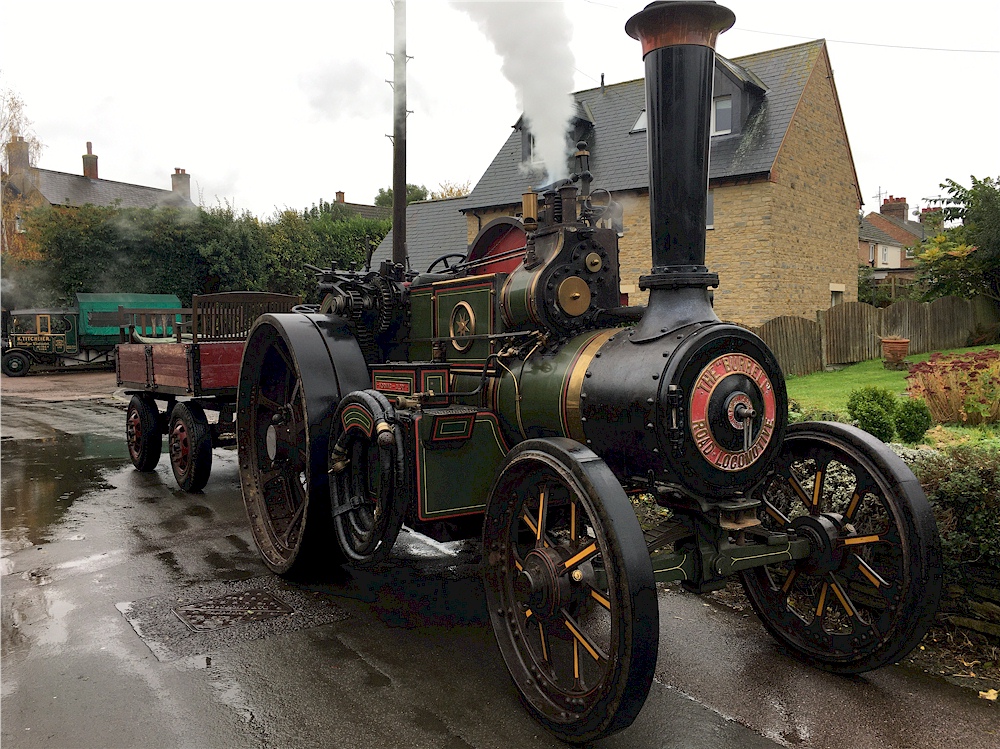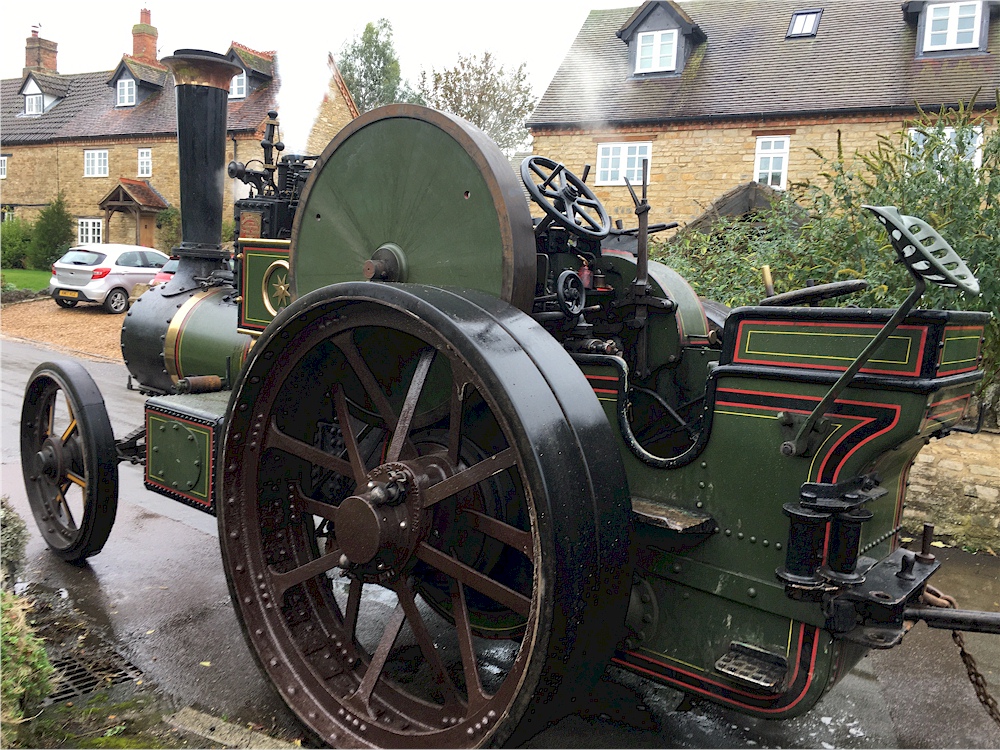 Two steam vehicles parked outside The Sun, Felmersham