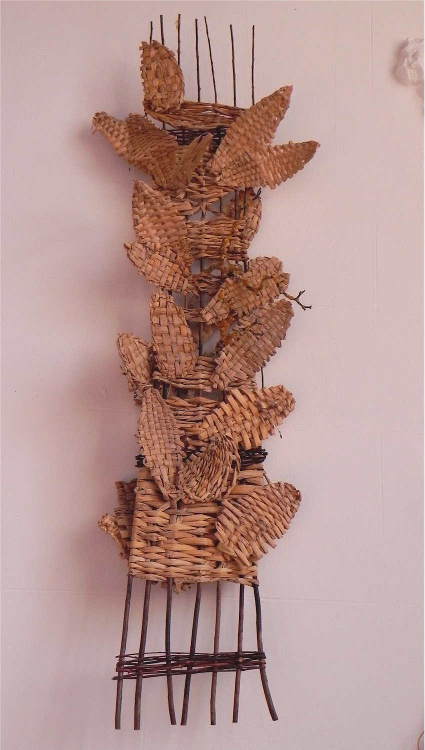 shows a rush collage supported on a hazel-wood frame