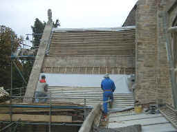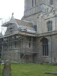1999: North transept roof retiled and breathable membrane fitted under the tiles. String coarse replaced.